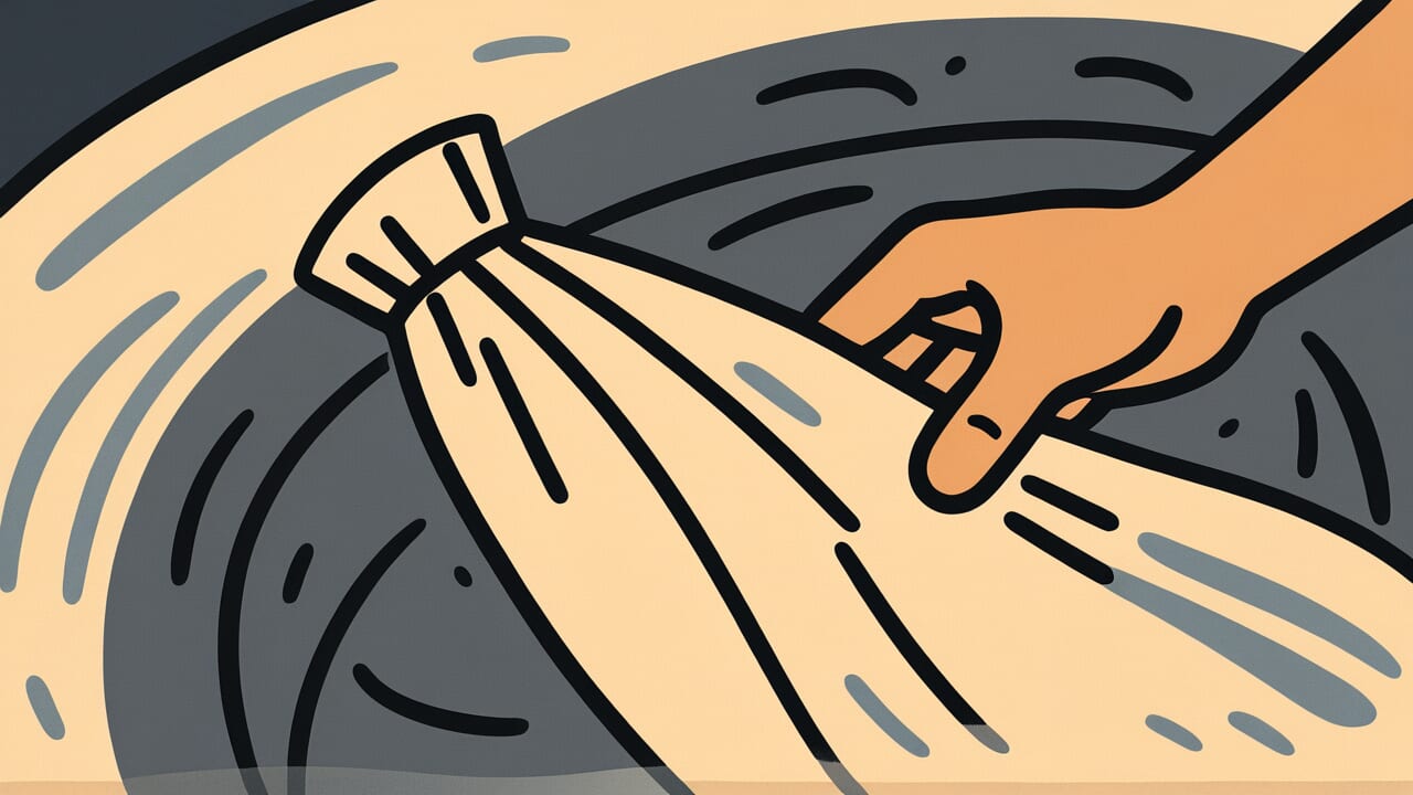 Schlammpartikel werden von der Oberflächenspannung des Wassertropfens eingefangen. Wenn das Wasser wegrollt, trägt es den Schmutz mit sich.