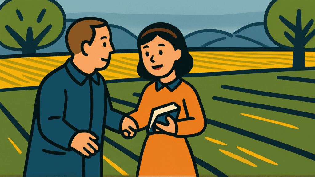 “Schöne Felder” bezieht sich auf fruchtbares und schönes Ackerland. Von der Edo-Zeit bis zur Meiji-Ära war Ackerland das zuverlässigste und wertvollste Eigentum. Es gab einen historischen Hintergrund, in dem viele Eltern, die sich um die Zukunft ihrer Kinder sorgten, den Kauf und die Schenkung guten Ackerlandes als Beweis ihrer Liebe betrachteten.