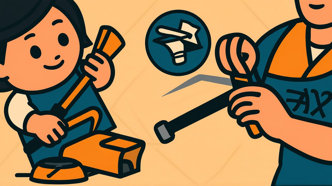 Du verwandelst eine grobe Metallmasse namens Axt in die extrem präzise Form einer Nadel. Auf molekularer Ebene ordnest du verstreute Eisenatome in eine dünne, scharfe, geordnete Struktur um.