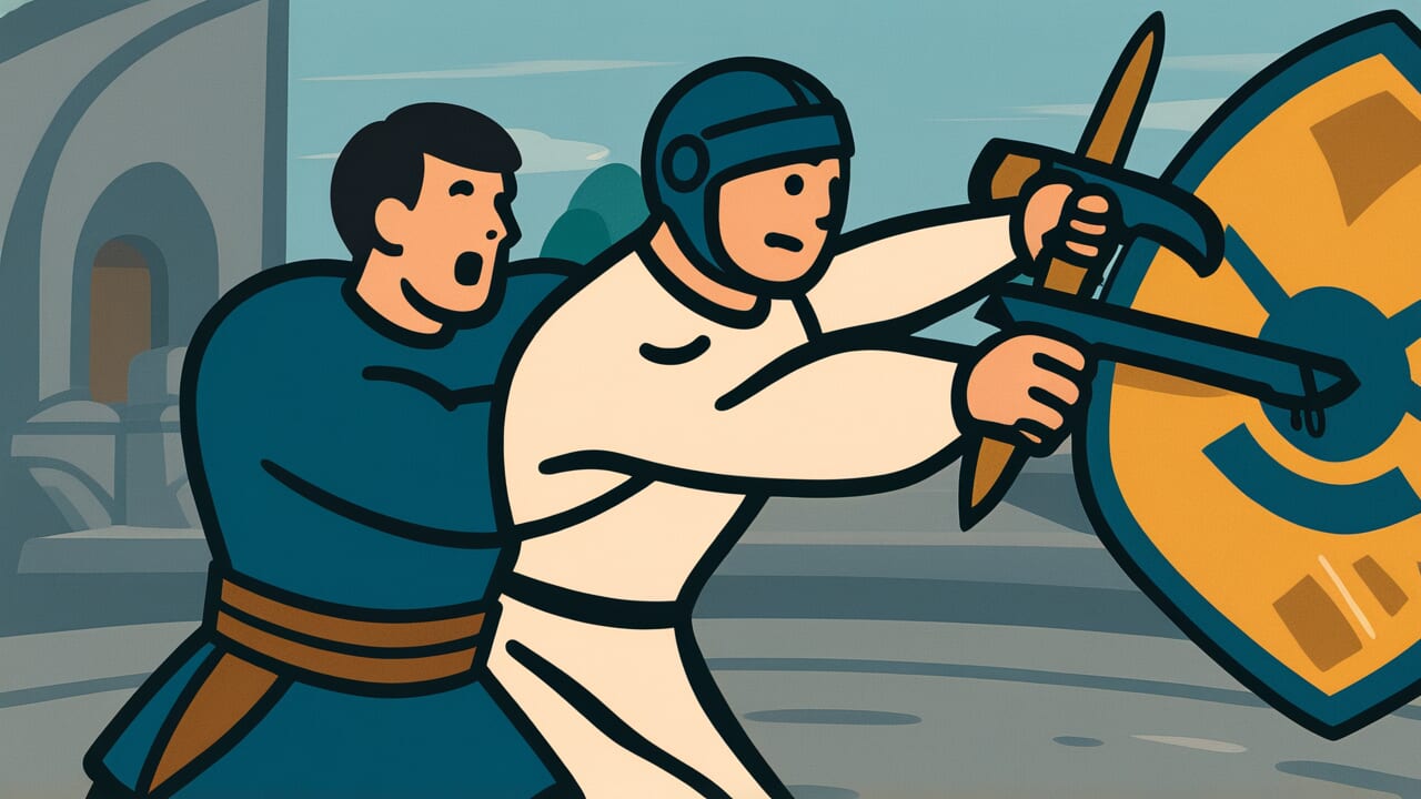 Das Wort „Verteidigung” kommt vom lateinischen „defendere”, was „abwehren” oder „schützen” bedeutet. Interessanterweise stammt „Angriff” vom französischen „attaquer”, was ursprünglich bedeutete, sich an etwas „festzuklammern”. Das schafft einen sprachlichen Kontrast zwischen Wegstoßen und Festhalten.