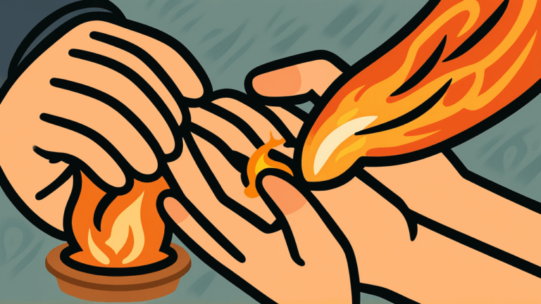 This proverb is mainly used to critically express someone else’s excessive frugality. It characteristically refers not to simple saving or thrift, but to extreme stinginess that goes beyond common sense. By using the example of the physically impossible and painful act of lighting fire on a fingernail, which is such a small part of the body, it conveys feelings of surprise and exasperation at going to such lengths to save money.