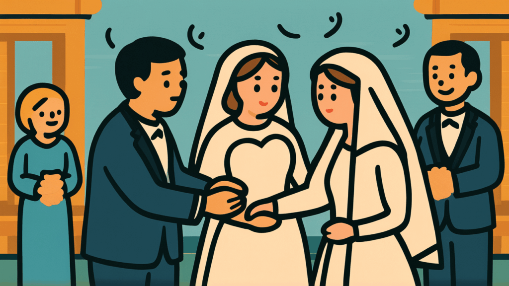 « Le mariage d’une mendiante » est dit être un proverbe né d’observations de la vie des gens ordinaires pendant la période d’Edo. Dans la société de cette époque, la forme et l’échelle des mariages différaient grandement selon le statut social et les circonstances économiques.