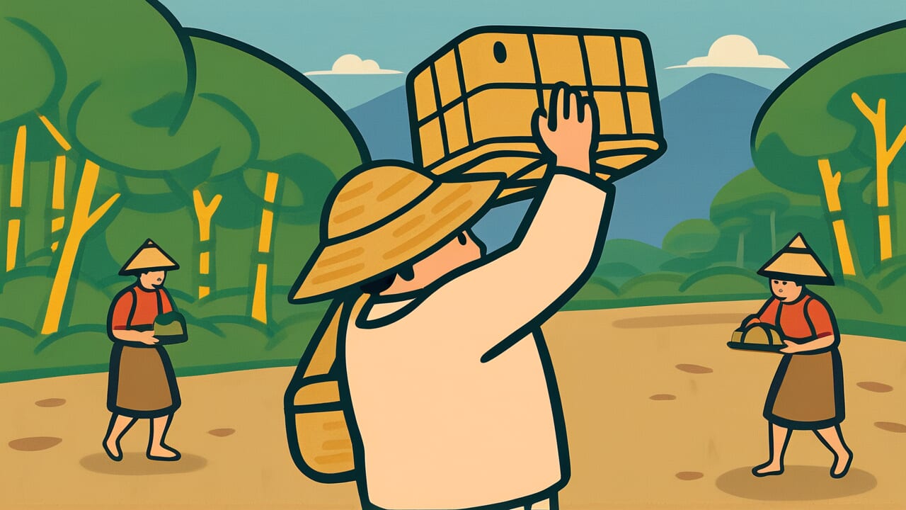 « Un chapeau de bambou sur des épaules qui valent mille kan » décrit une personne de haut rang qui se déguise pour voyager simplement. Cela fait référence à quelqu’un de grand statut qui ne porte qu’un simple chapeau tressé pour cacher son identité et voyager en vêtements modestes.
