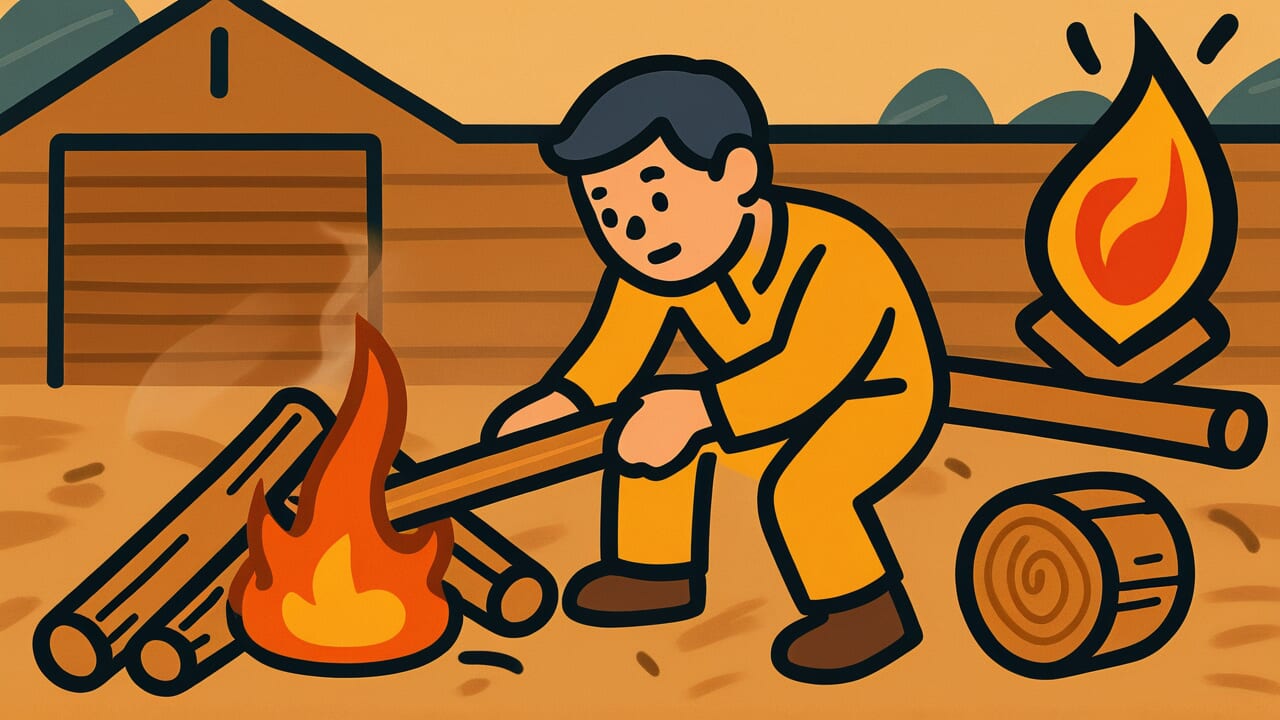 均匀摆放柴薪与日本茶道中炭火摆放的美学相关。不仅考虑燃烧,还考虑如何燃烧的态度,反映了日本文化对过程而非仅仅结果的重视。